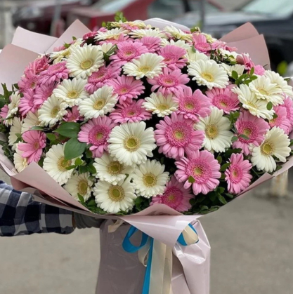 Букет из 101 белой и розовой герберой | Купить в Урумчи